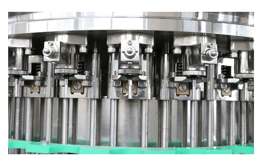 El gripper de botellas de acero inoxidable especialmente diseñado no toca la zona roscada del cuello de la botella, evitando la contaminación secundaria.